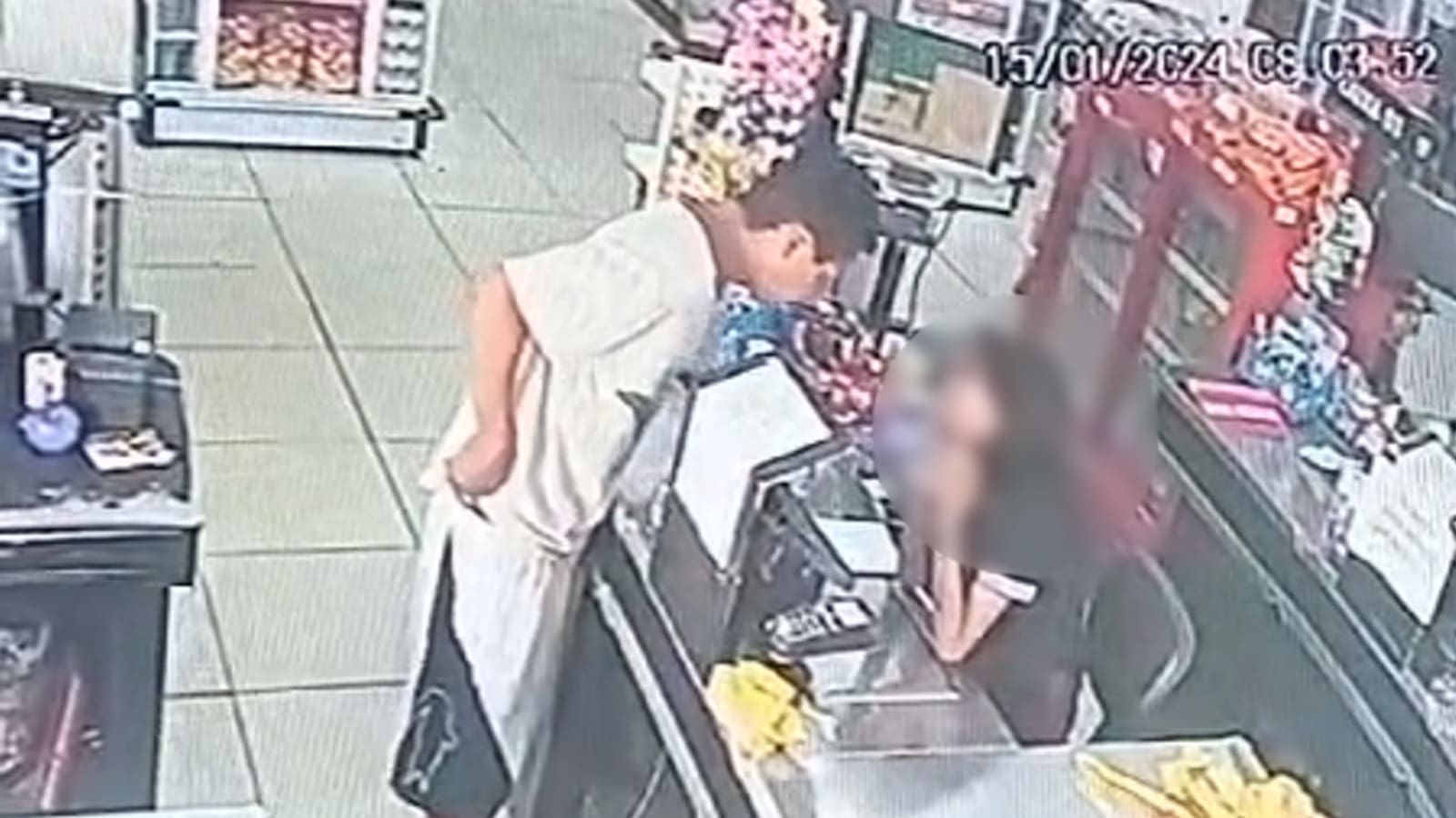 O incidente, capturado pelas câmeras de segurança do supermercado, mostra o suspeito abordando a funcionária do caixa. Ele, de forma ameaçadora, retirou um garfo da bermuda e exigiu que a operadora abrisse a gaveta do caixa.