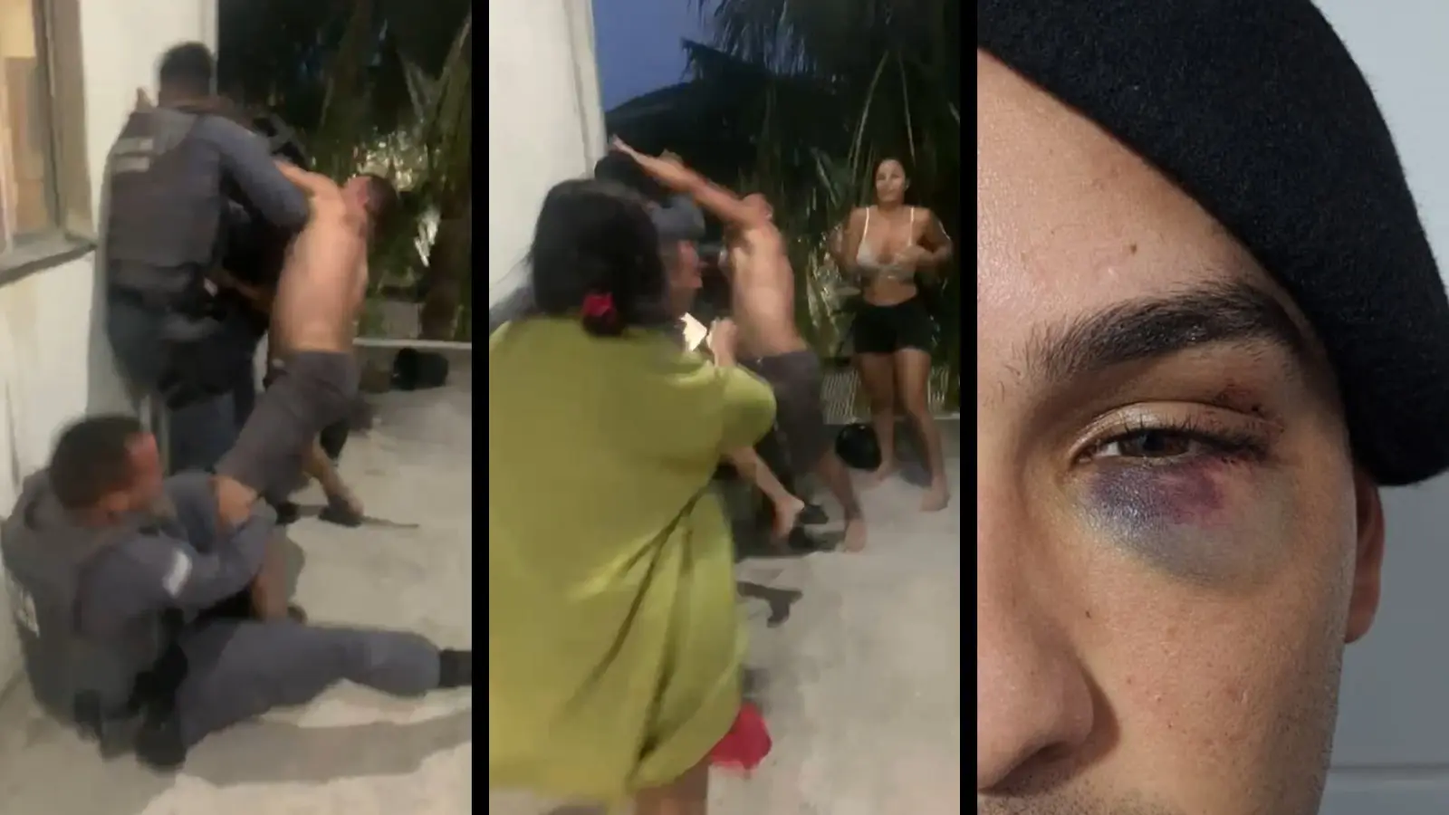 A resistência evoluiu para luta corporal, durante a qual o vereador desferiu socos contra os policiais, atingindo o olho esquerdo de um soldado, que ficou visivelmente lesionado. A contenção durou cerca de cinco minutos e exigiu o reforço de outra guarnição.