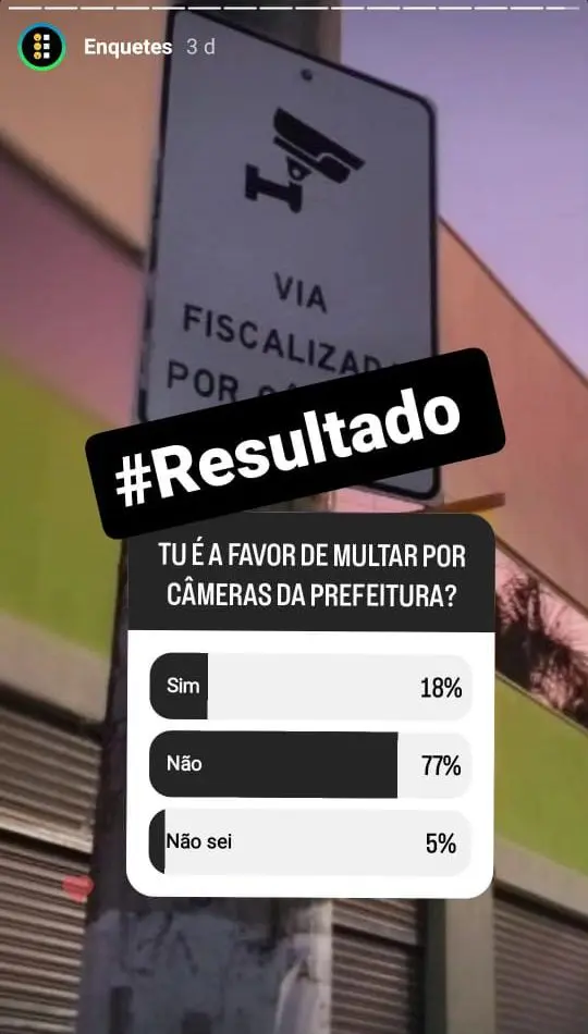 Uma pesquisa recente conduzida pelo Serra Noticiário através dos stories do Instagram apontou a visão dos eleitores sobre a nova política de trânsito da prefeitura, que começou a vigorar no último dia 26 de junho. A pesquisa, que ficou disponível para votação durante 24 horas e começou durante o último domingo (01), revelou um descontentamento considerável em relação à nova medida.